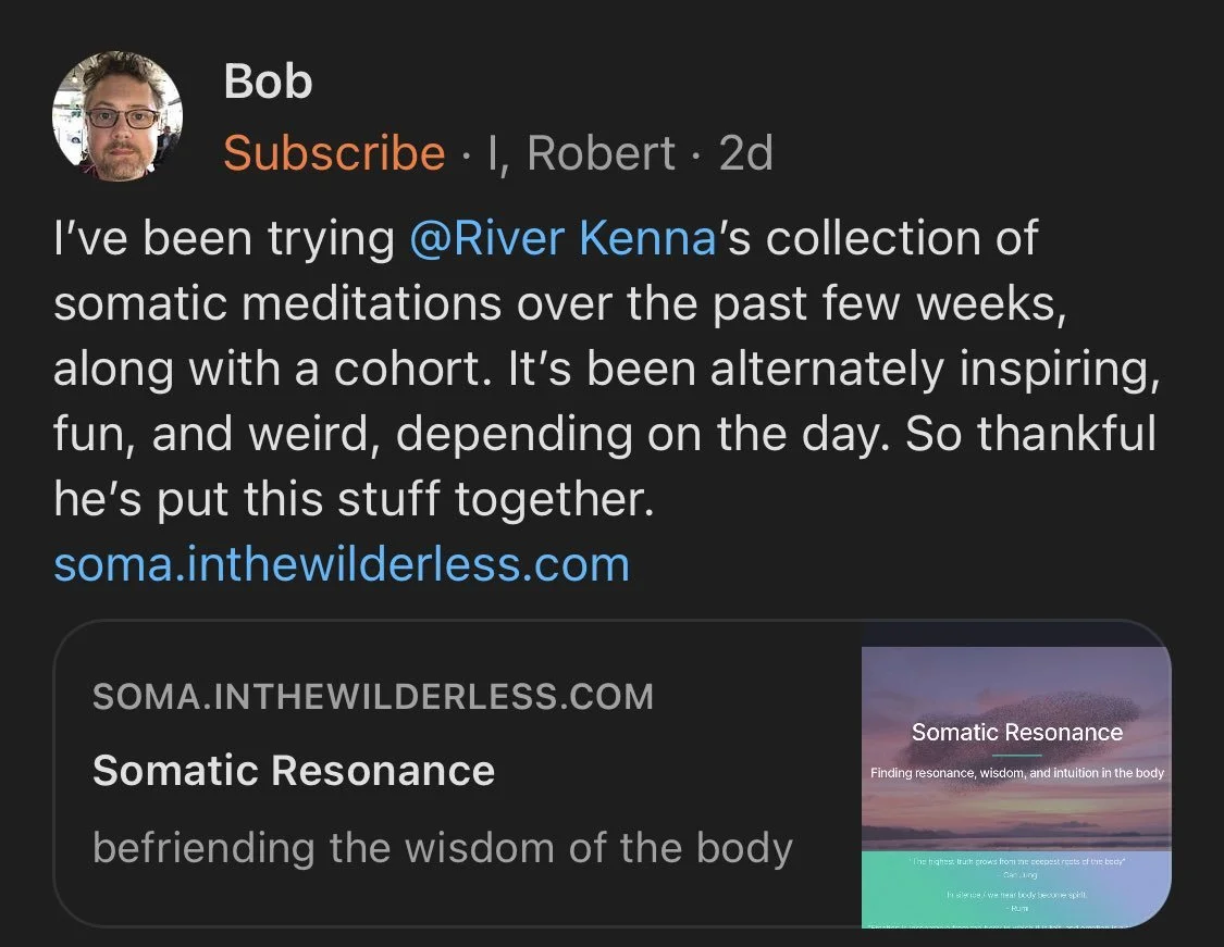 River is... well, it's hard to describe what exactly River does. It's not therapy, it's not coaching in the ways I've understood it, it's deep in Secret Third Thing territory. River feels like a sort of custodian of gateless gates. We worked together for two months, and in that time he helped me get unblocked in a bunch of directions at once. River creates a space where what needs to emerge can do so, and offers thoughts about it.